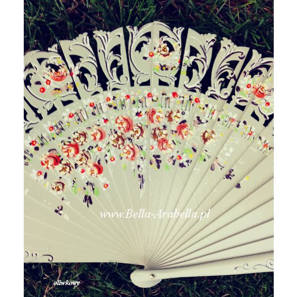 wachlarz hiszpański drewniany 23 cm KWIATOWE GAŁĄZKI