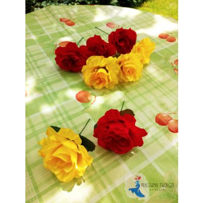 Każda RÓŻA ma przyklejone do płatków (od spodniej części płatków) ciemno zielone (plastikowe) listki.