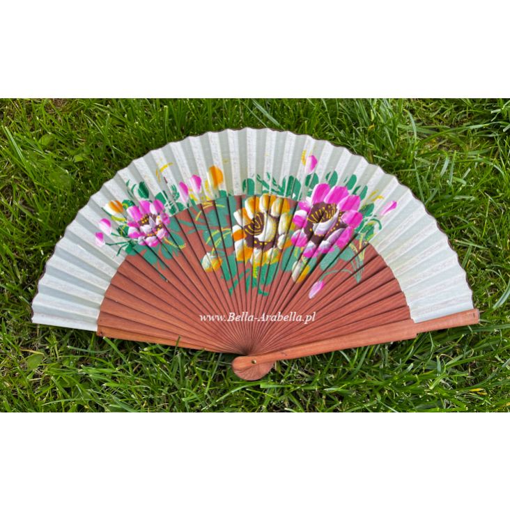 wachlarz hiszpański polerowana grusza KWIATY 23 cm - NOWOŚĆ